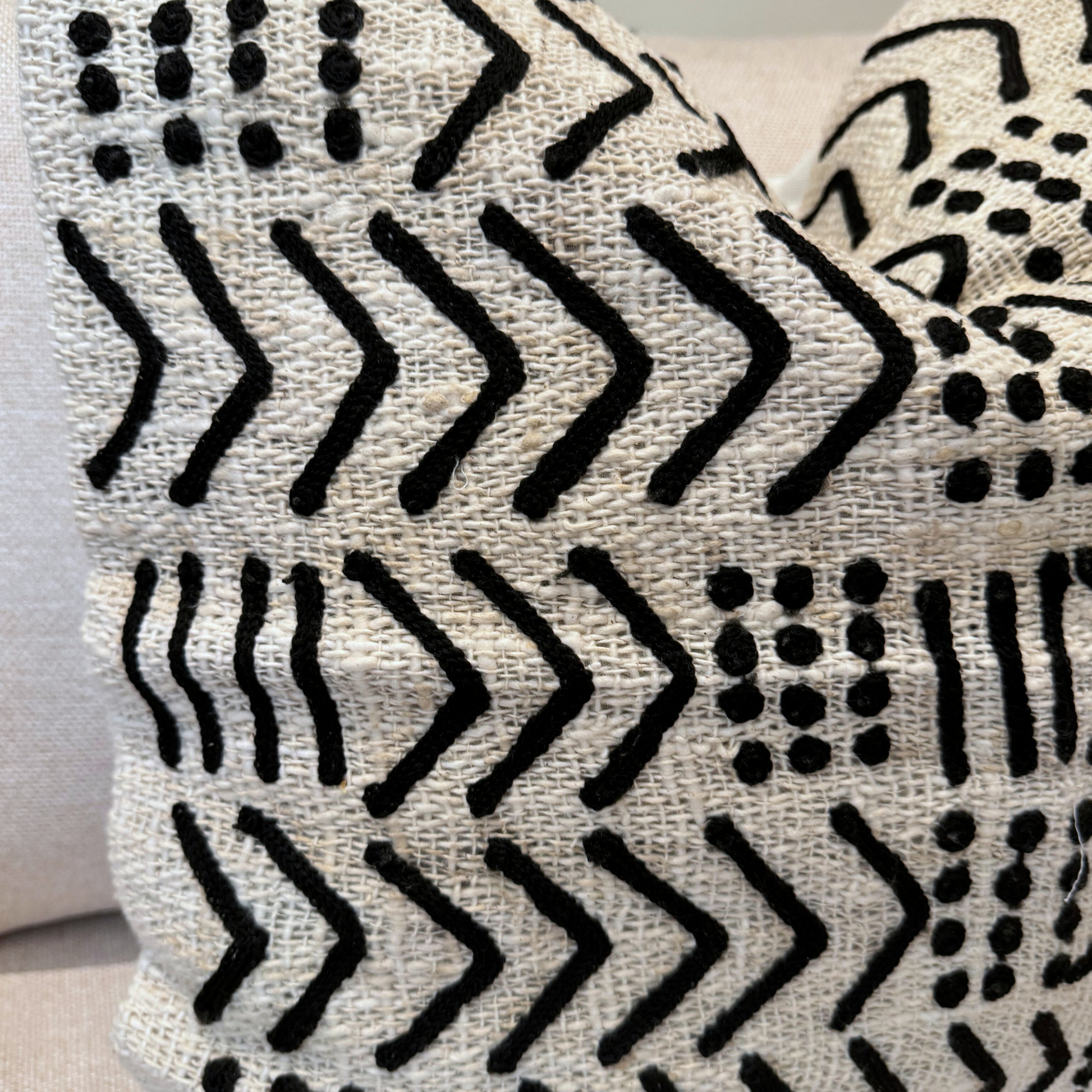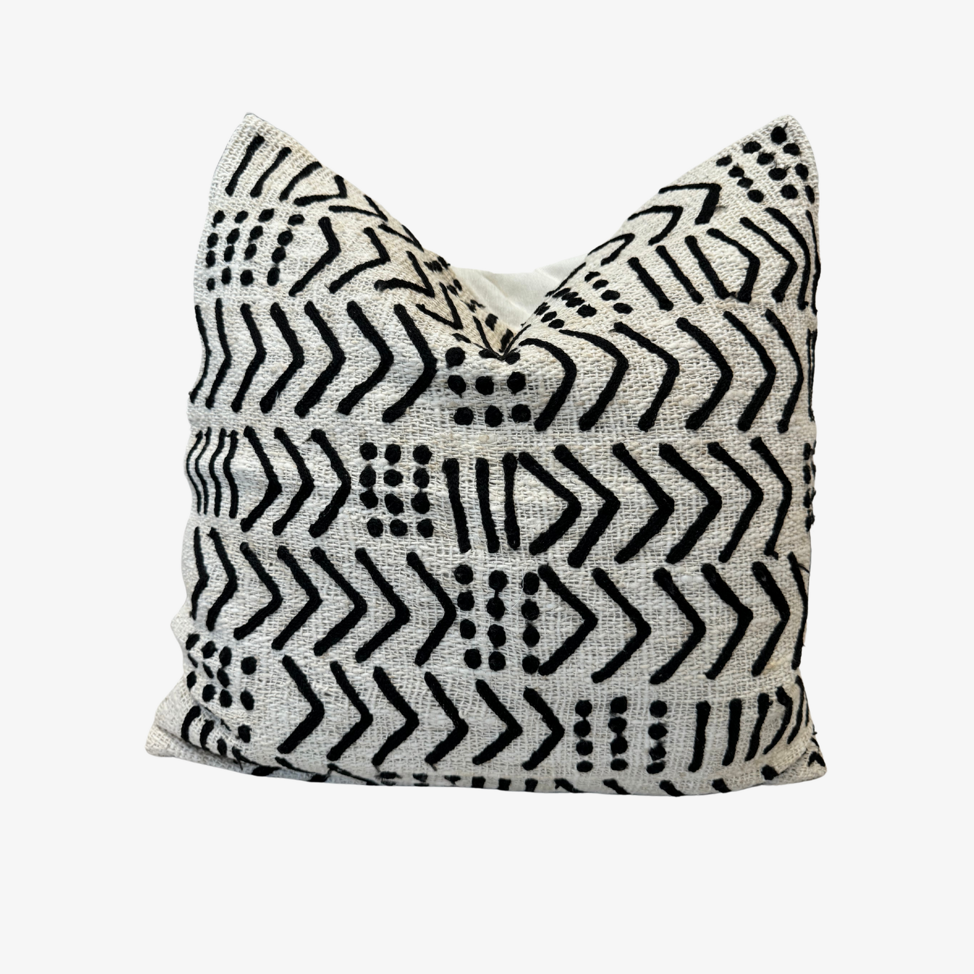 أضف لمسة شخصية إلى الديكور الداخلي الخاص بك مع هذه الوسادة ذات النمط العرقي، المستوحاة من منسوجات بالي التقليدية. يخلق التباين المذهل بين الأنماط السوداء وخلفية الكتان الأبيض الطبيعي جمالية حديثة ومتطورة، مثالية للأجواء البوهيمية أو المعاصرة. صُنعت هذه الوسادة بعناية، وهي ليست فقط مزخرفة ولكنها متينة أيضًا، مما يوفر الراحة والأناقة لغرفة المعيشة أو غرفة النوم أو منطقة الاسترخاء.