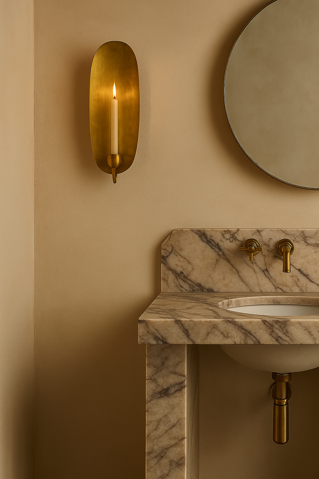 Sa forme ovale en laiton doré brossé reflète une lumière chaleureuse et tamisée, créant une atmosphère apaisante et sophistiquée.