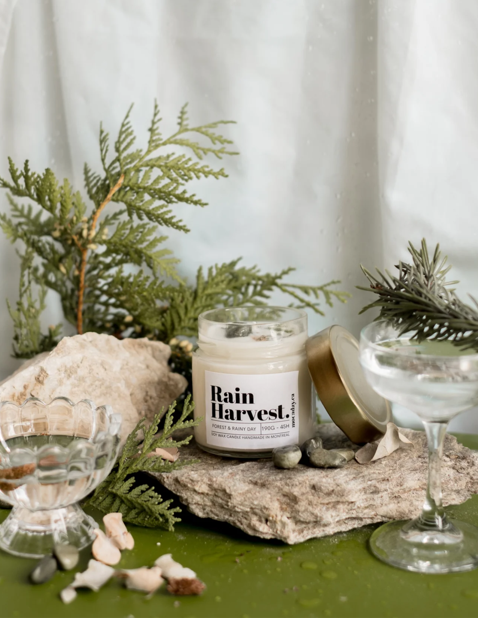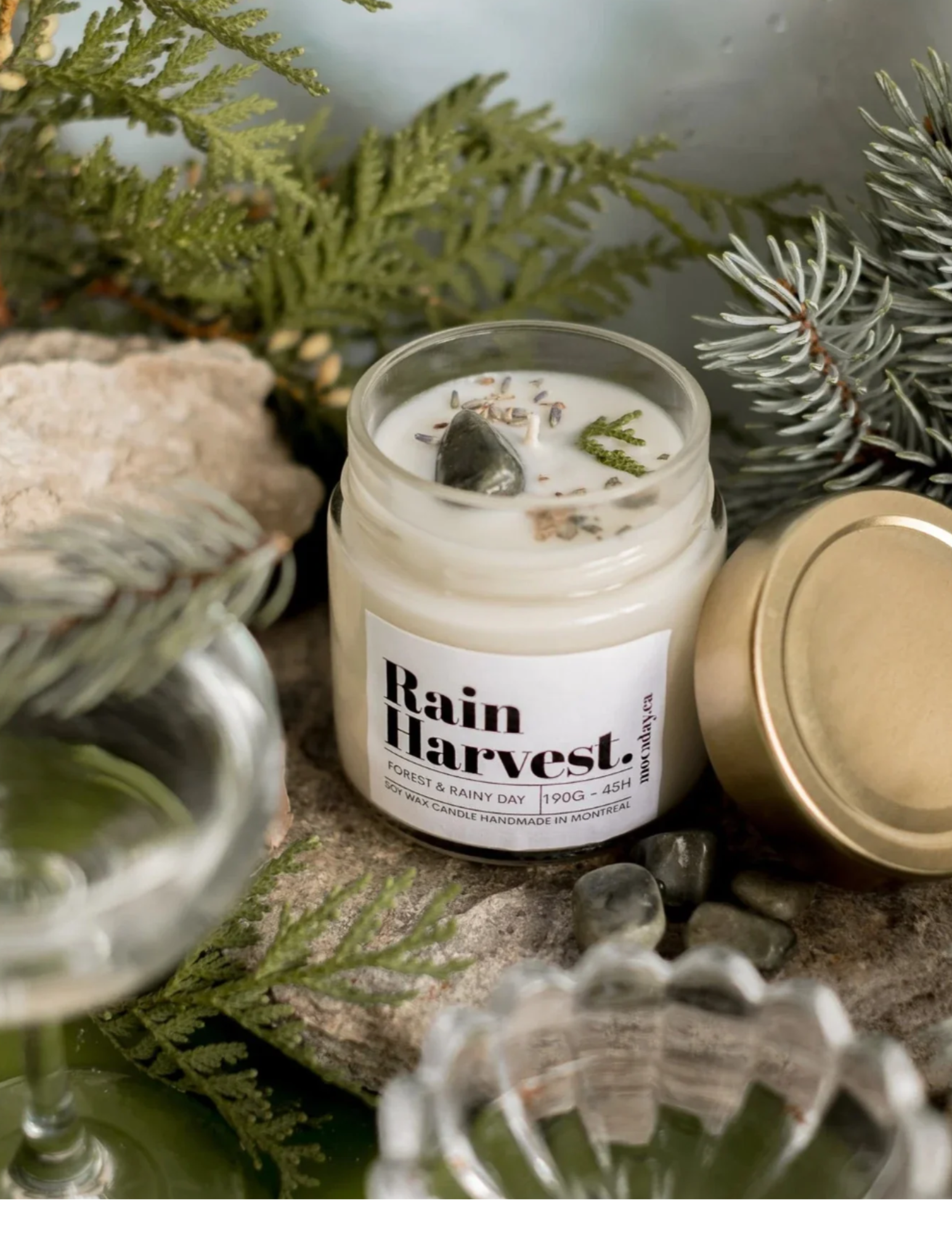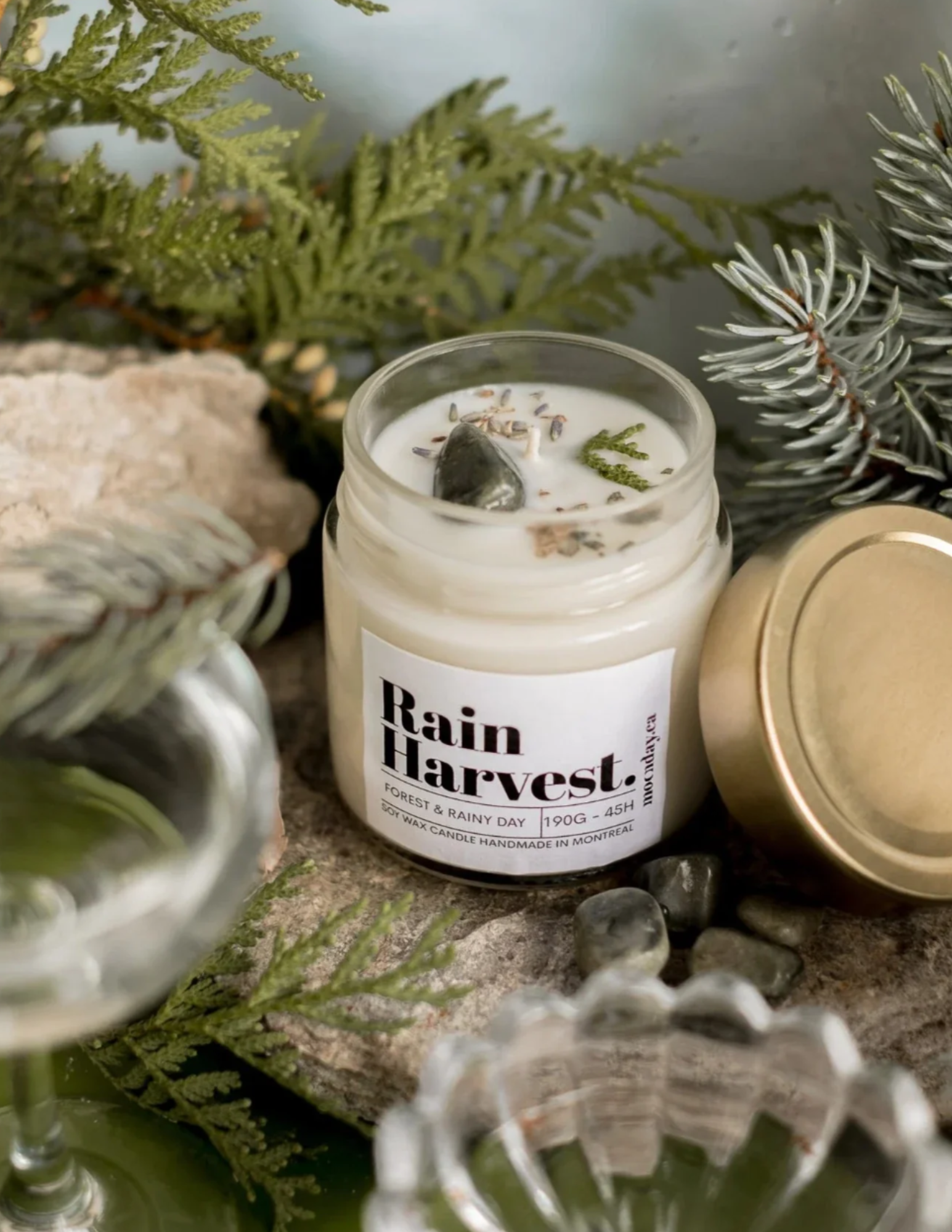 Éveillez vos sens avec la bougie parfumée "Forêt et Pluie", une création de bien-être qui vous transporte au cœur d'une forêt après une douce pluie. Ce parfum envoûtant allie des notes fraîches et boisées pour recréer l'atmosphère apaisante et revigorante d'une promenade en forêt