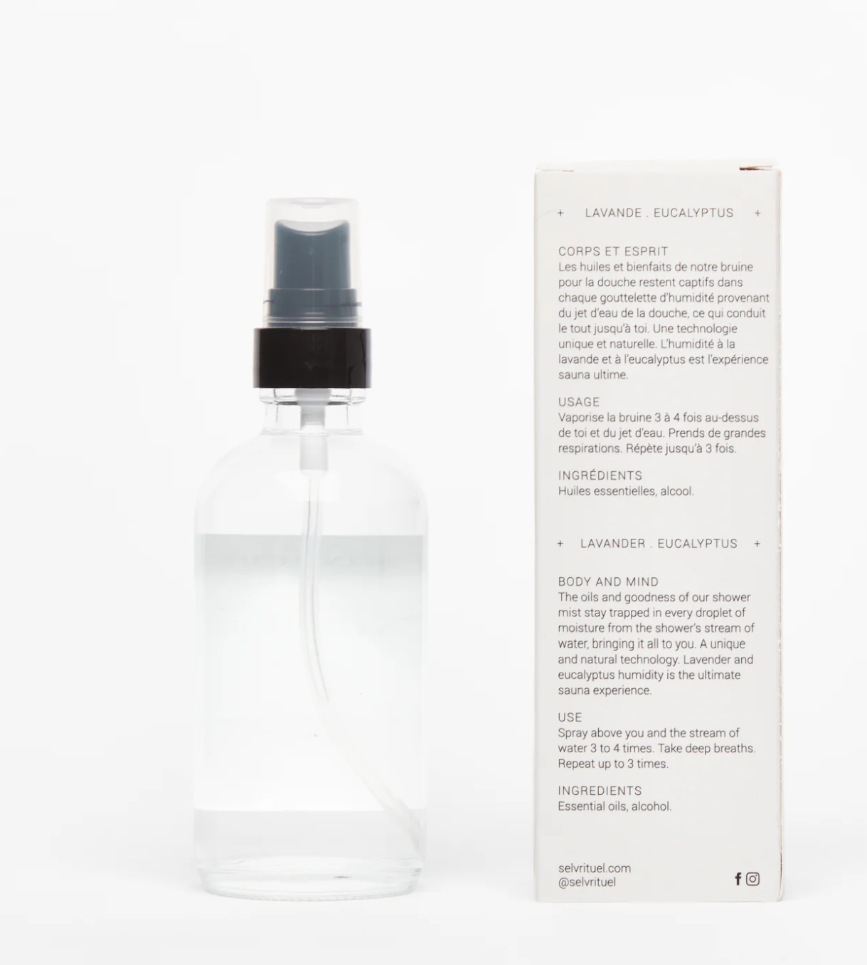 L'air frais, les arômes de lavande et d’eucalyptus se mélangent à la vapeur de ta douche. C’est comme au spa, dans un sauna, mais c’est chez toi. Le calme entre en toi par tes narines et chaque pore de ta peau.