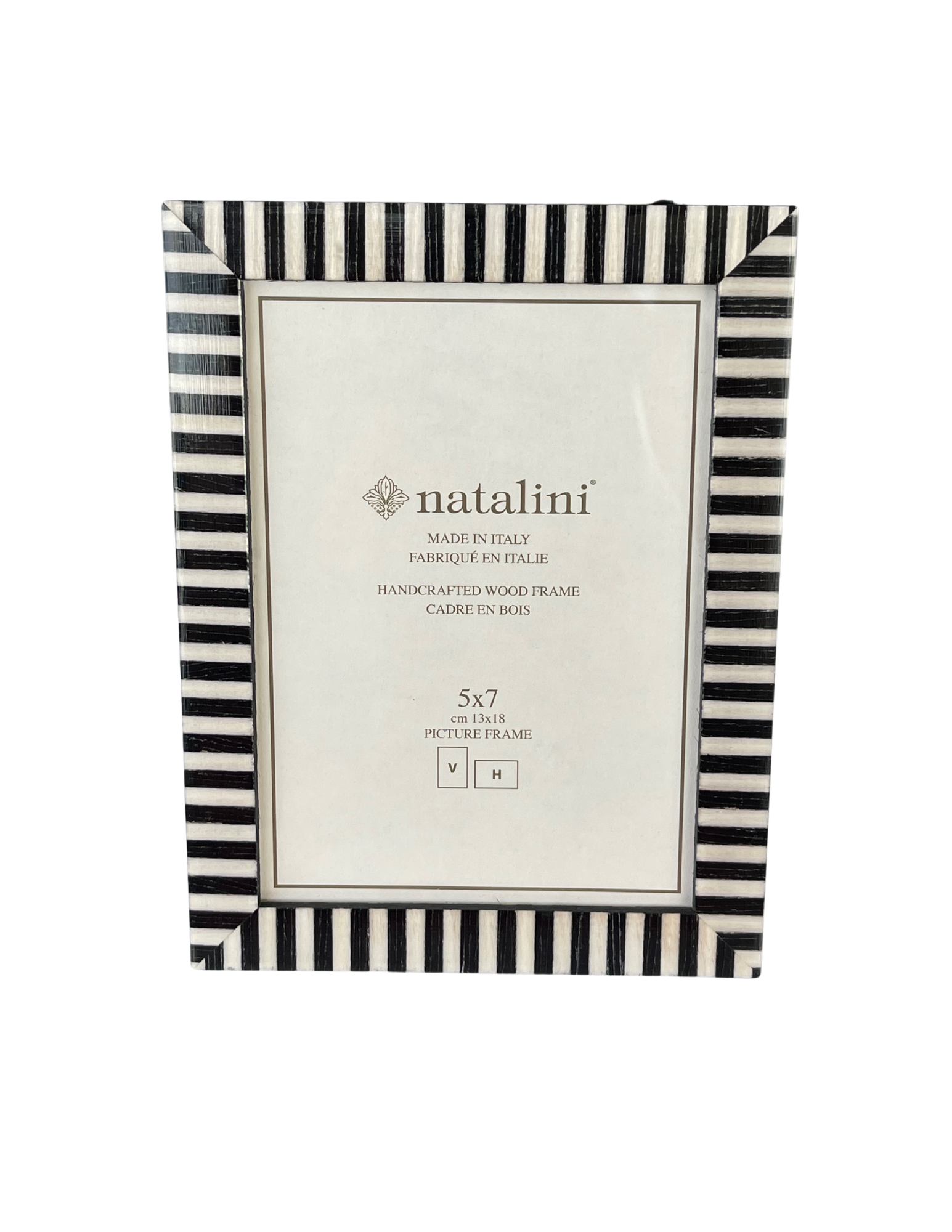 Apportez une touche d'élégance intemporelle à votre décor avec ce cadre photo rayé noir et blanc, fabriqué à la main en Italie par Natalini. Ce cadre combine un design classique avec une fabrication artisanale pour mettre en valeur vos plus beaux souvenirs.