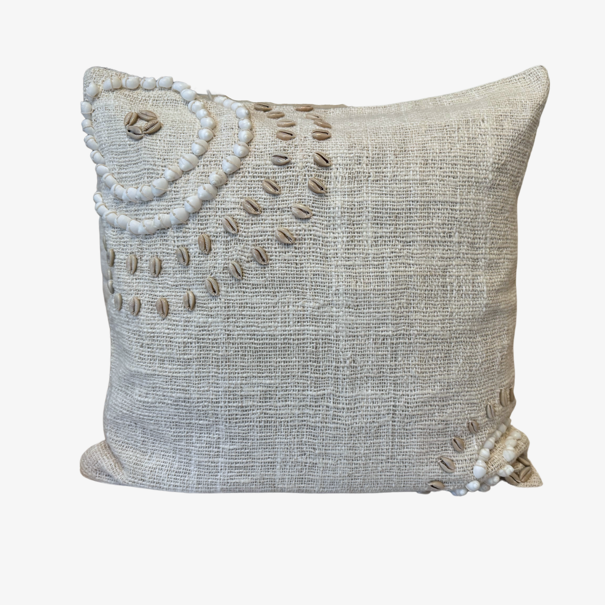 Ce coussin décoratif en lin, fabriqué à Bali, allie élégance naturelle et savoir-faire artisanal. Orné de coquillages délicatement disposés en motifs artistiques, il apporte une touche bohème et exotique à votre intérieur