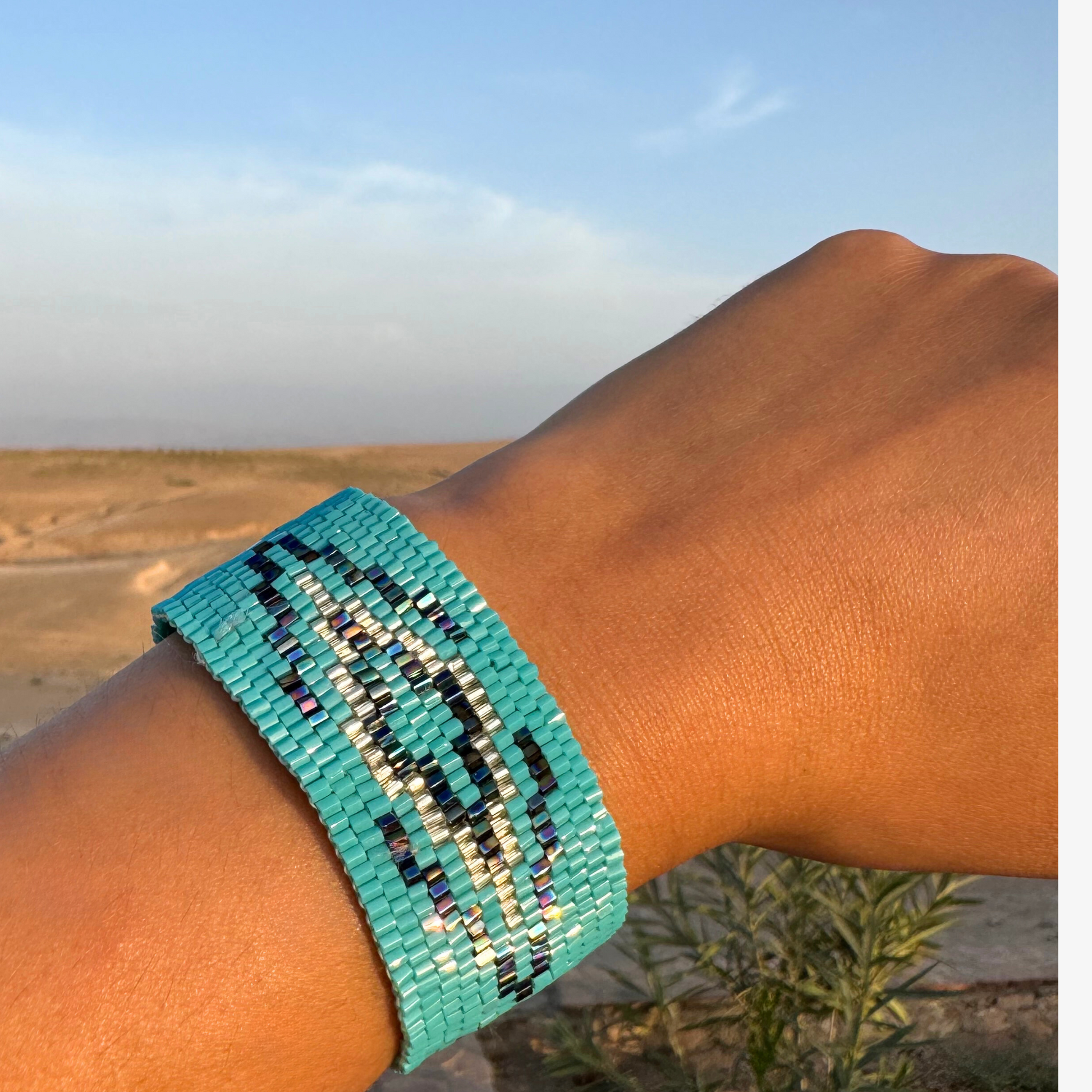 Élevez votre style avec ce magnifique bracelet manchette en perles tissées à la main, . Ajustable pour un confort parfait