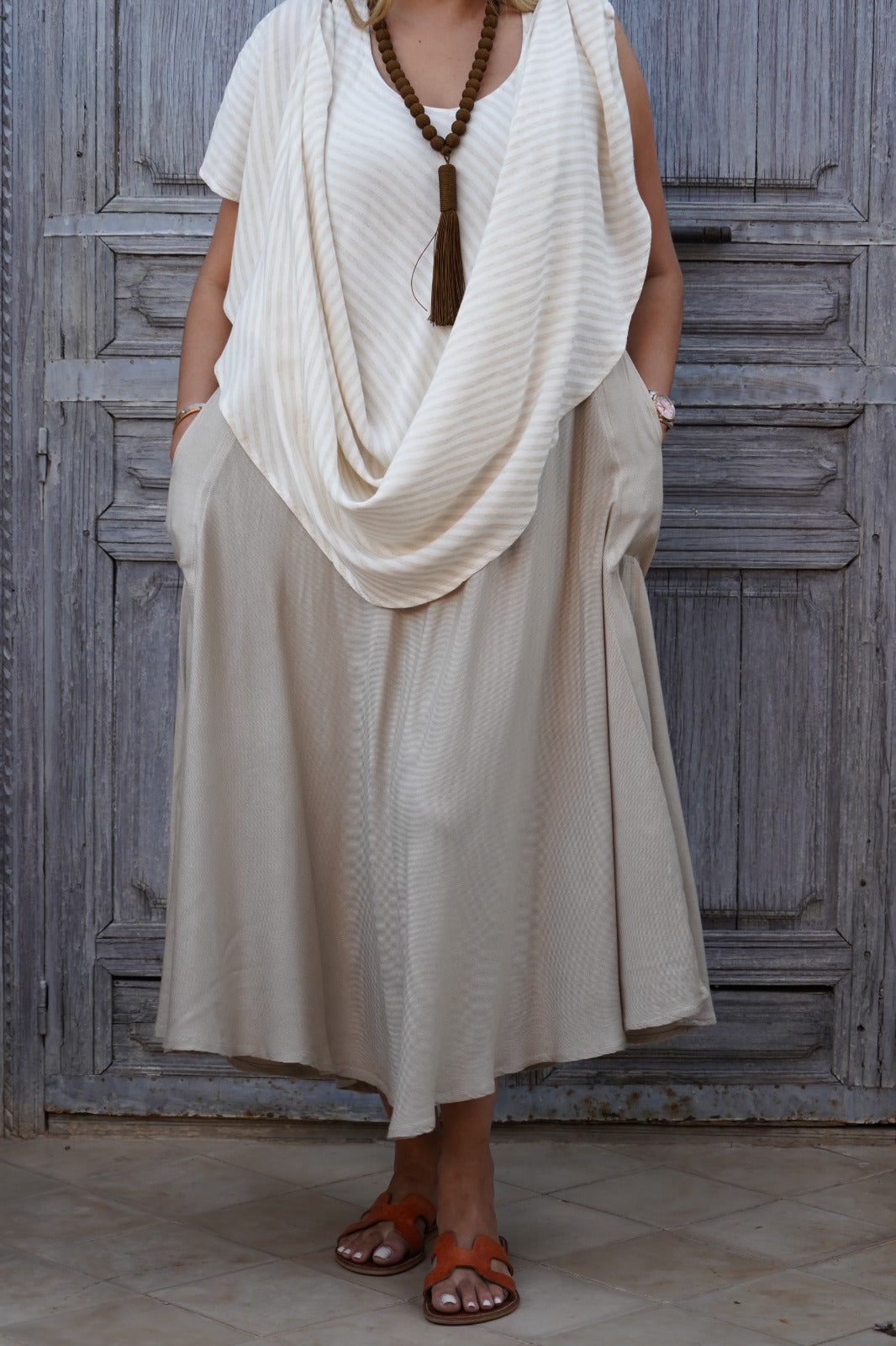 Confectionnée dans un tissus en lin légers et drapée avec grâce