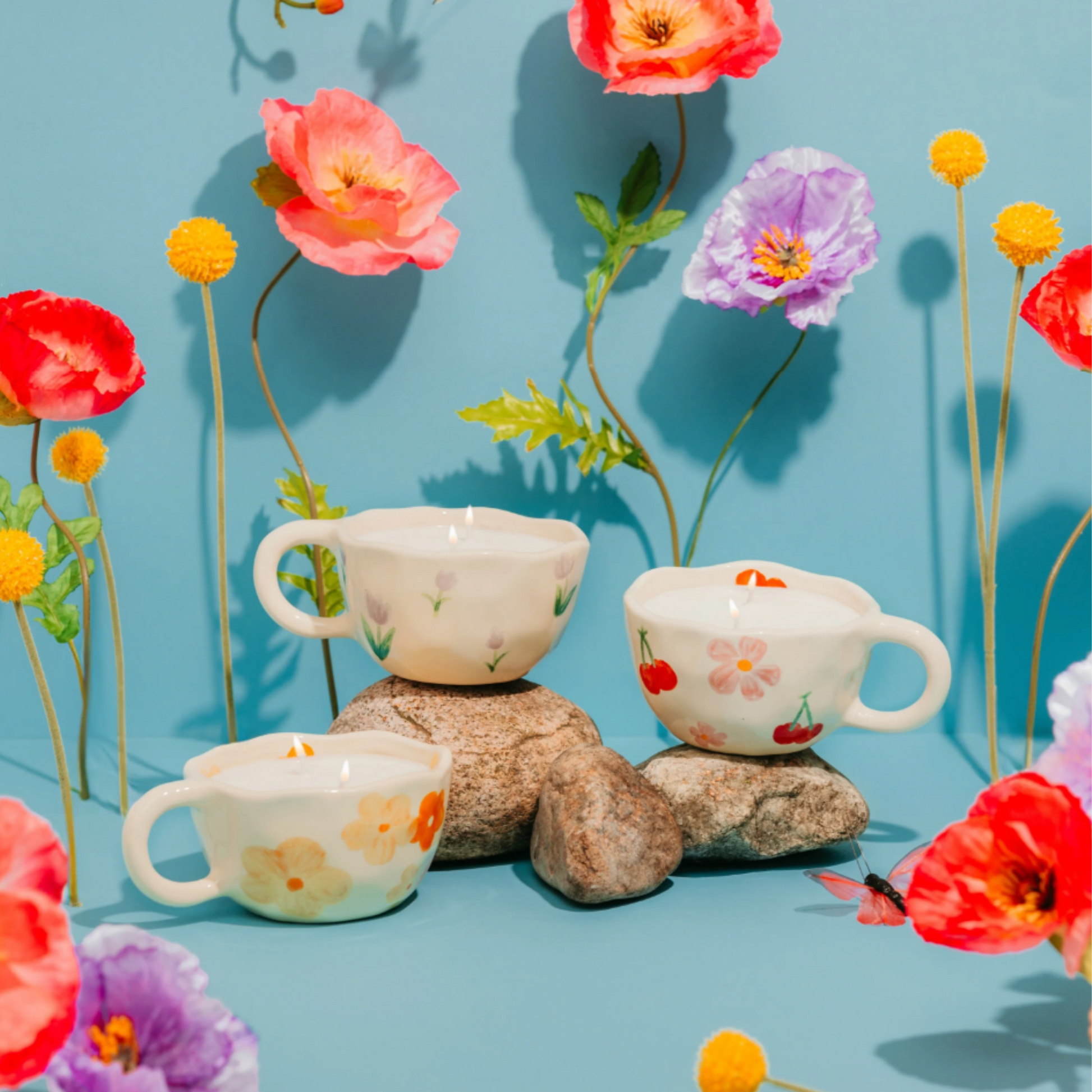 Bougie artisanale "Fleur", magnifiquement présentée dans une tasse décorative. Cette bougie unique combine l'élégance d'un objet de décoration et le plaisir d'une fragrance envoûtante.